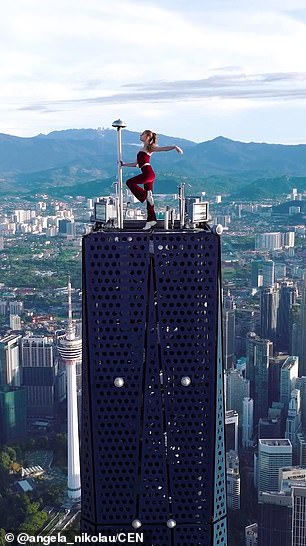 29-vjeçarja Angela Nikolau, ngjiti kullën Merdeka në Kuala Lumpur (678 metra e lartë) bashkë me partnerin e saj Ivan Beerkus.