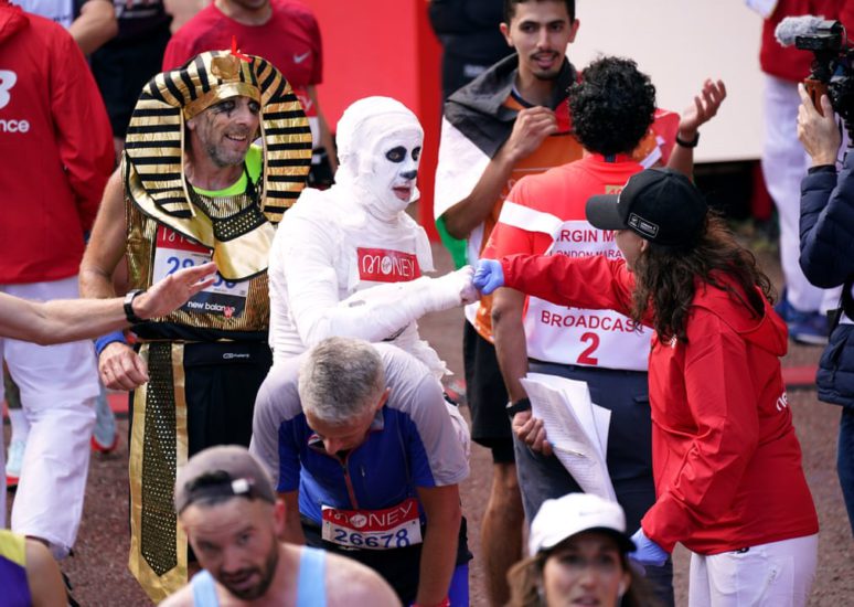 Rrugët e Londrës u mbushën ditën e dielë me turma njerëzish që brohorisnin duke mbështetur vrapuesit në Maratonën e Londrës.
