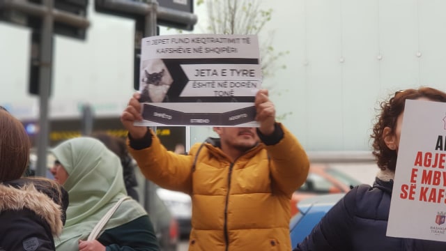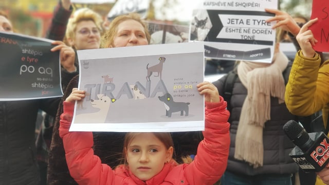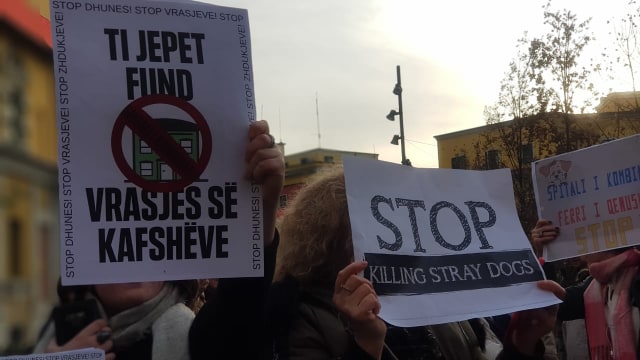 Disa qytetarë kanë protestuar kundër vrasjeve të kafshëve në Tiranë. Me pankarta në duar ata i bënë thirrje kryebashkiakut Erjon Veliaj që të ndalojë këtë fenomen dhe protestuan poshtë zyrës së tij.