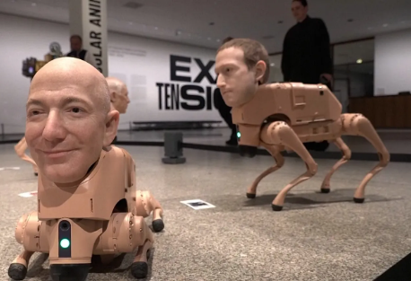 Qen robotë me fytyra hiperrealiste të miliarderëve të teknologjisë që krijojnë një vepër arti të gjeneruar nga inteligjenca artificiale po bëjnë xhiron e botës në një ekspozitë në Berlin nga artisti amerikan Mike Winkelmann, i njohur më mirë si Beeple.