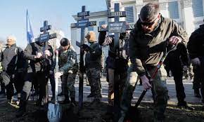 Por a kishte ai frikë? “Pak. Jo për veten time por për të afërmit e mi”, tha ai. Pranë tij, protestuesit mbanin tabela ku thuhej: “Donbasi është ukrainas”; “Nuk do të tërhiqemi kurrë”…