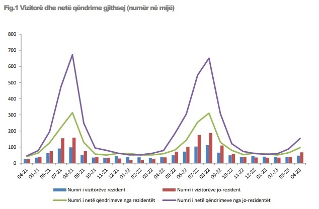 Të dhënat e tjera të INSTAT tregojnë se në prill hyjnë në vend gjithsej rretj 614 mijë shtetas të huaj. Nga të dhënat rezulton se rreth 11% e turistëve rrinë në hotele të paktën një natë.