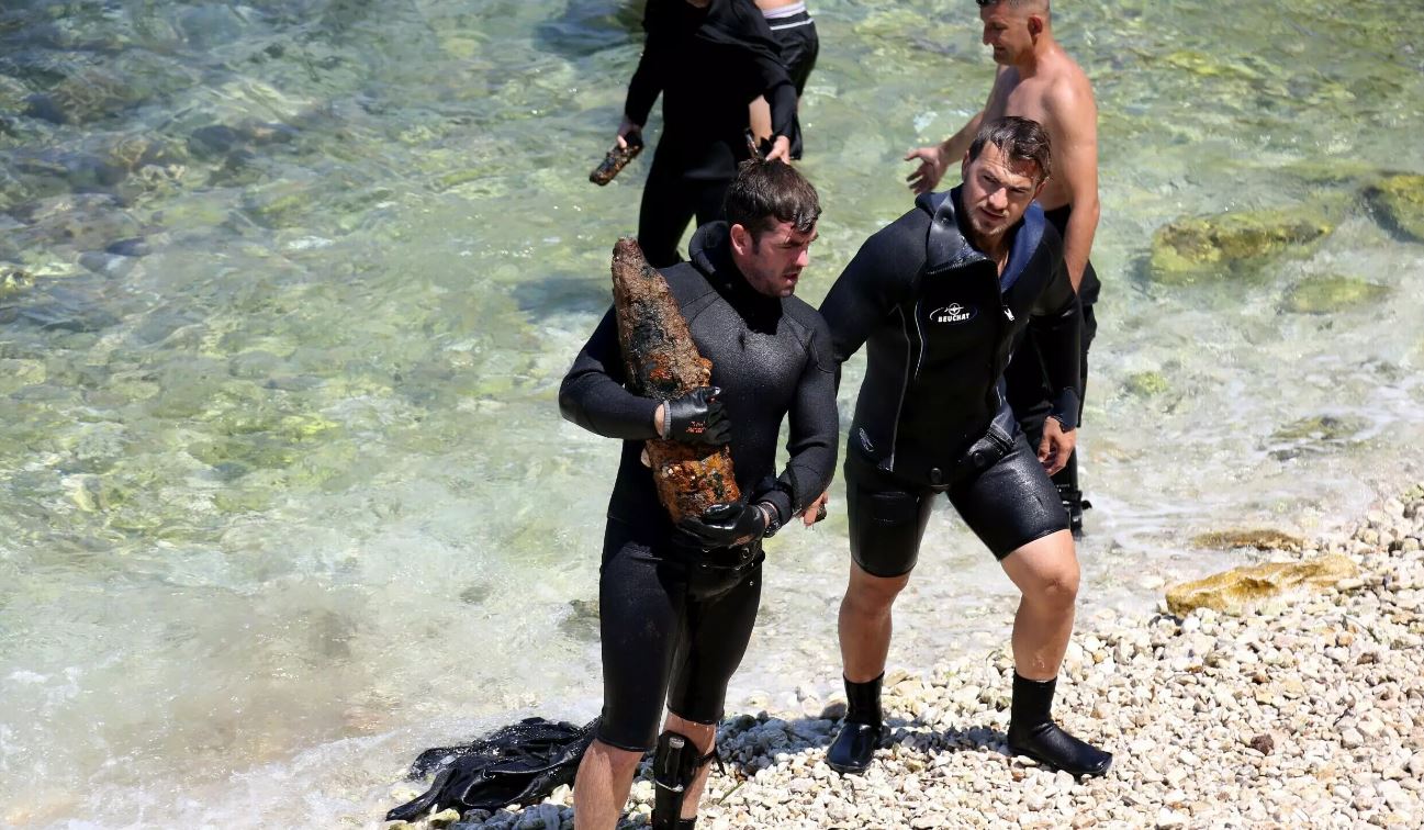 Në më pak se dy orë, zhytësit mblodhën 85 copë municione mbresëlënëse, të cilat me gjasë ishin hedhur qëllimisht në det nga trupat pushtuese italiane shtatë dekada më parë.