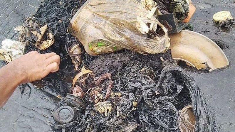 Gati gjashtë kilogramë plastikë u gjetën në stomakun e një balene, e cila u gjet e ngordhur në një plazh në Indonezi. Kjo u njoftua nga një zyrtari Parkut Kombëtar Wakatobi, në ishullin e Sulawesi, pasi zbulimi ndodhi tëhënën në mbrëmje. Balena, 9,5 metra e gjatë, kishte brenda një masë plastike tëpërbërë nga 115 gota, katër shishe, 25 çanta najloni dhe madje edhe sandale medy kordha, si dhe qindra pjesë të tjera plastike.
