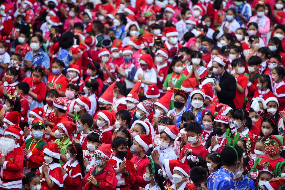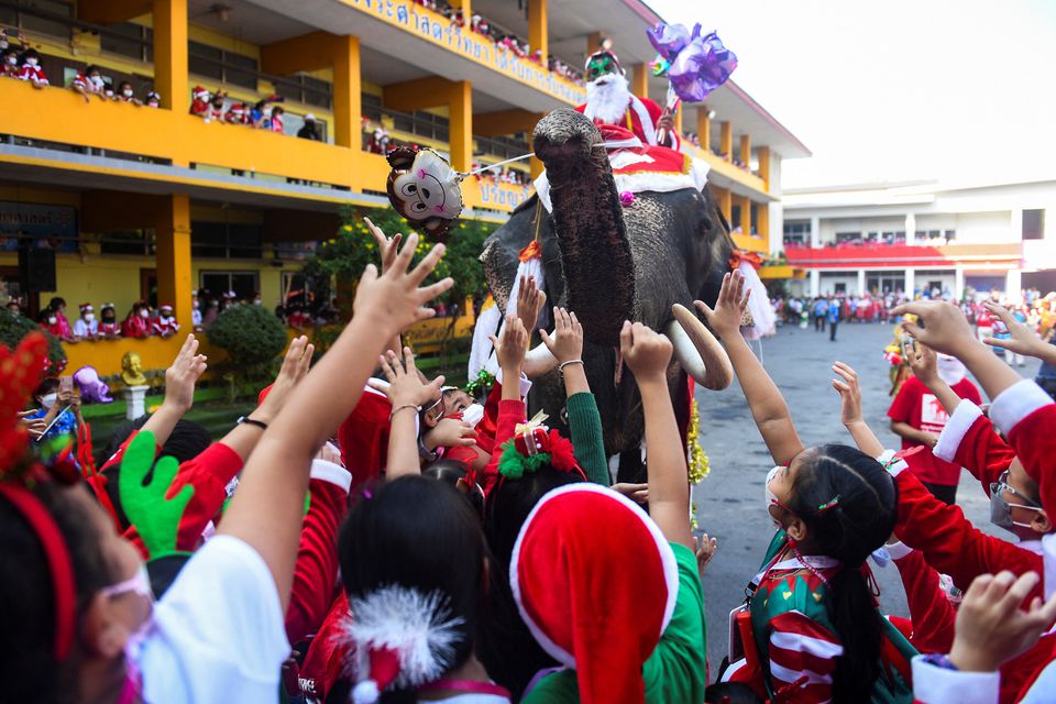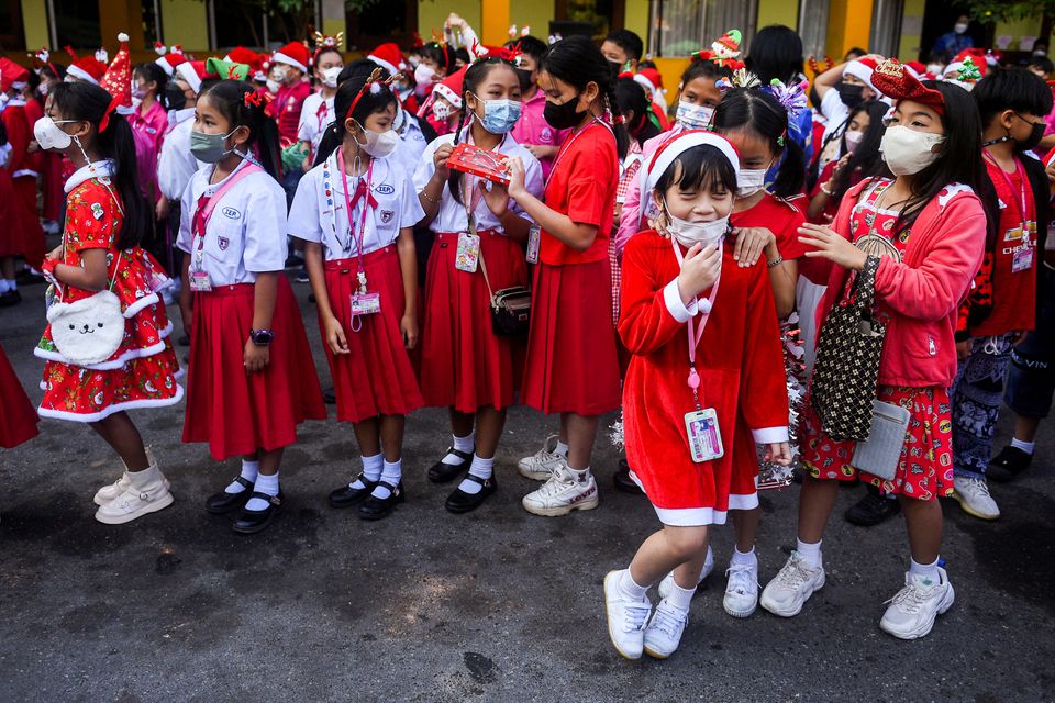 Si një traditë vjetore, Babagjyshi në Tajlandë shpërndau dhurata për nxënësit nëpër shkolla këtë javë.