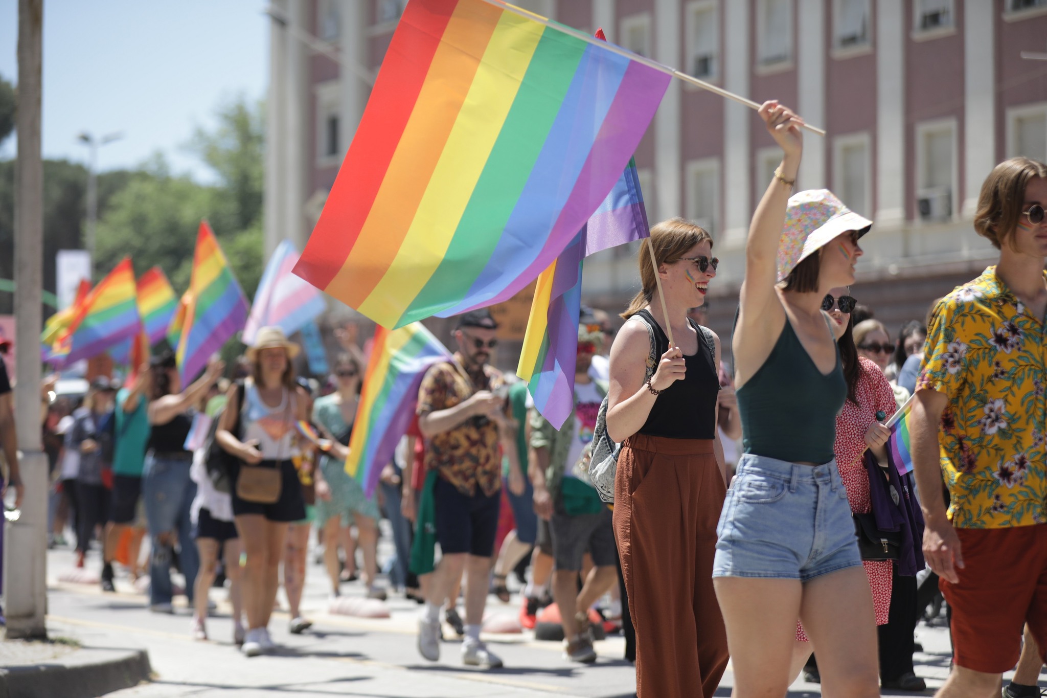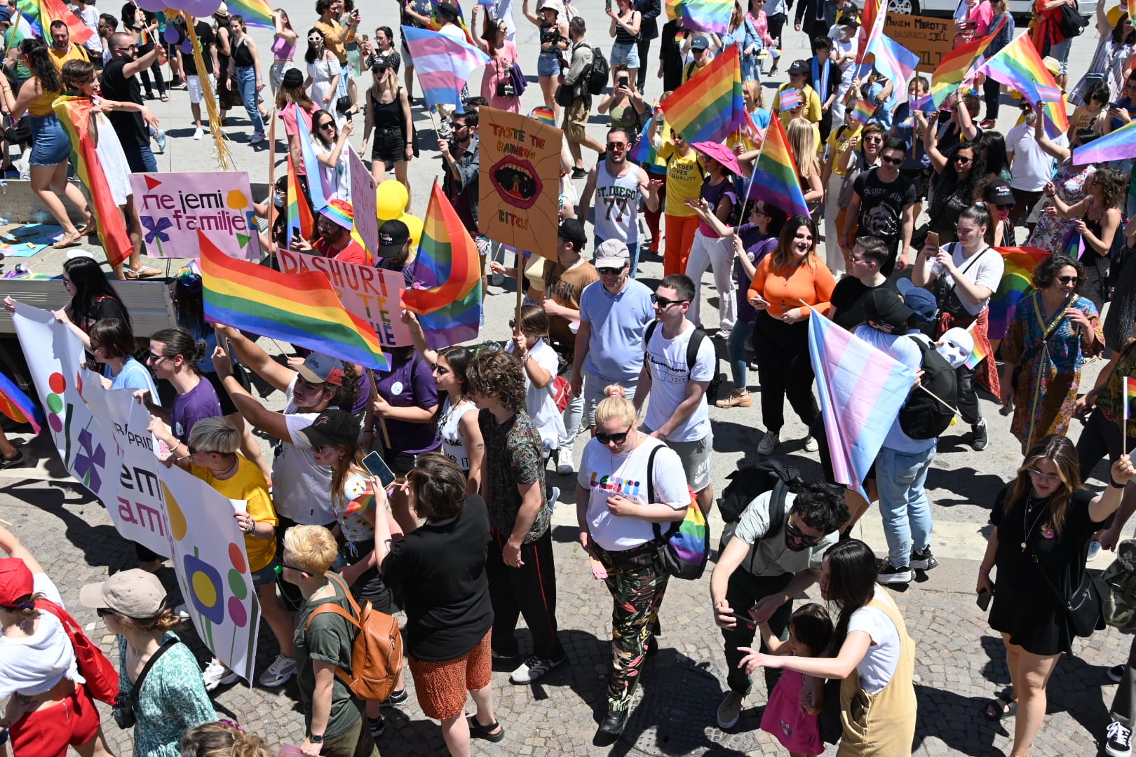 Në Tiranë u mbajt këtë të shtunë Parada e Krenarisë. Dhjetëra pjesëtarë dhe përkrahës të komunitetit LGBT+ (homoseksualë, lesbike, biseksualë dhe transgjinorë) marshuan me flamuj me ngjyrat e ylberit, nën shoqërimin në distancë të policisë në rrugët kryesore të kryeqytetit. Disa nga pjesëmarrësit mbanin pankarta ku shkruhej “ne jemi familje”, që ishte edhe parulla kryesore e këtij organizimi.