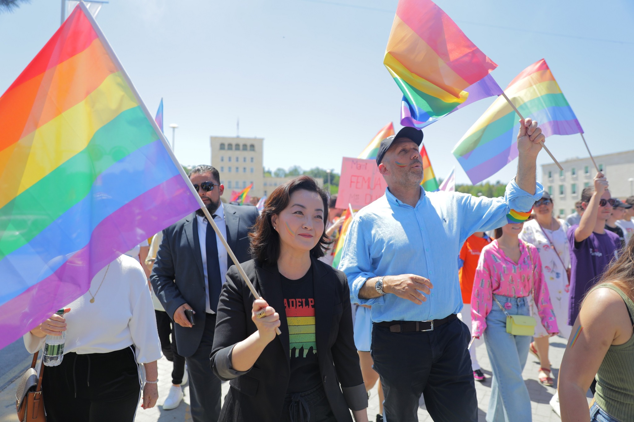 Edhe ambasadorja amerikane Yuri Kim dhe Zëvendës Ambasadori Demian Smith iu bashkuan Marshimit të Krenarisë LGBTI+ në bulevardin e Tiranës për të treguar mbështetjen e Shteteve të Bashkuara për mbrojtësit e të drejtave të njeriut dhe organizatat e shoqërisë civile që punojnë në Shqipëri për të përkrahur të drejtat dhe liritë themelore të të gjithë njerëzve për të jetuar me dinjitet. “Shtetet e Bashkuara mbeten të përkushtuara ndaj të drejtave të njeriut dhe lirive themelore për të gjithë personat si parime kushtetuese që vazhdojnë të udhëheqin diplomacinë amerikane. Presidenti Biden publikoi këtë vit Memorandumin për Përparimin e të Drejtave të Njeriut të Personave Lezbike, Homoseksualë, Biseksualë, Transgjinorë, Queer dhe Interseks anembanë botës”, thuhet në deklaratën e Ambasadës.