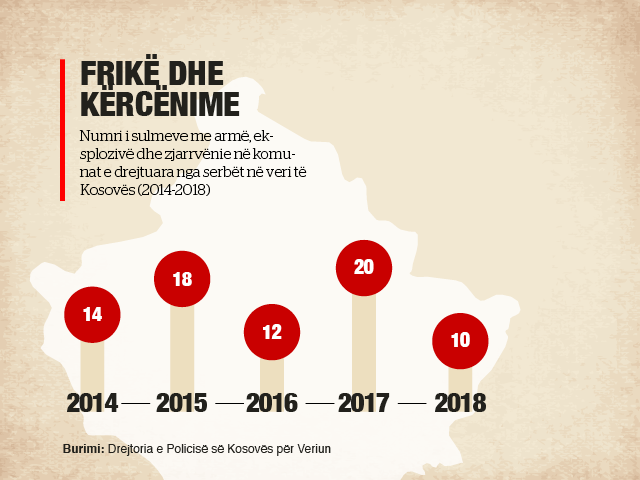 Shumica e incidenteve përfshijnë shkatërrimin e makinave apo pronave dhe ndodhin natën vonë, duke i shtyrë ekspertët e krimit të spekulojnë se autorët e tyre mund të jenë më shumë të interesuar të japin një mesazh se sa të plagosin apo vrasin. “Nuk jam i kënaqur,” thotë Shyqyri Syla, kryeprokuror i Mitrovicës. “Ka pasur sulme që nga viti 2014 dhe askush nuk është identifikuar. Kanë kaluar katër vjet dhe sa më shumë kohë kalon, aq më e vështirë bëhet gjetja e fajtorëve”, thotë ai.