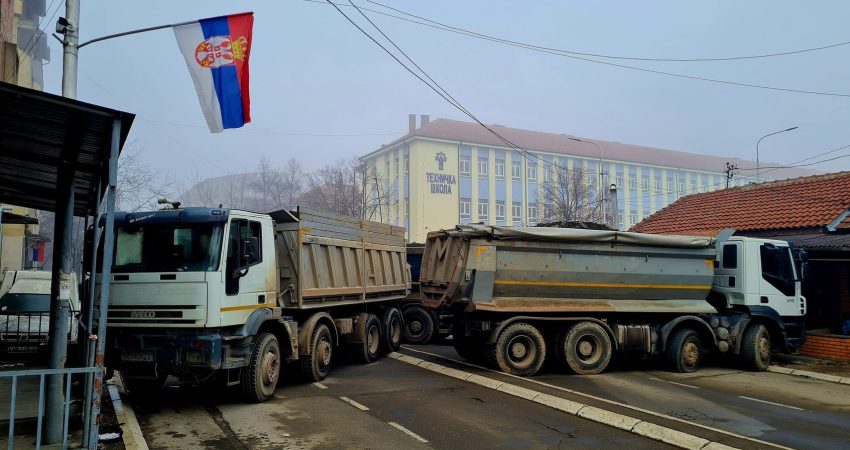 Barrikada e vendosur në Mitrovicë të Veriut gjendet tek udhëkryqi i Shkollës Teknike, tha Policia.