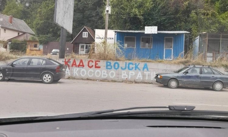 Grafiti “Kur ushtria të kthehet në Kosovë” është ekspozuar të enjten në veriun e banuar kryesisht me serbë, një mur jo shumë larg objektit të Komunës së Zubin-Potokut.