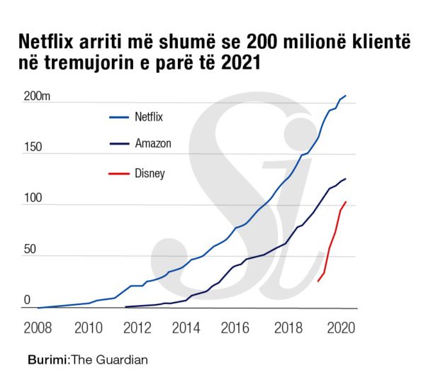 Rritja rekord e vitit të kaluar prej 37 milion abonentë tërhoqi bazën e saj globale të përdoruesve në mbi 200 milion, ndërsa pandemia çoi shikuesit e rinj për të kërkuar shfaqje të tilla si “The Crown”, “The Queen’s Gambit” dhe “Bridgerton” për të përballuar mërzinë e karantinës.