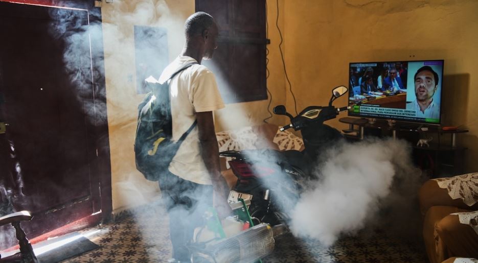 Një punonjës që kujdeset për zhdukjen e mushkonjave në banesa në Havanën e Vjetër, 6 janar 2026