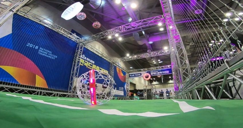Sporti e ka origjinën në Korenë e Jugut dhe turneu i parë amerikan i futbollit me dron u zhvillua në korrik të vitit të kaluar në Lojërat Rocky Mountain State, në Kolorado. Ligat po fillojnë në Kolorado, Nju Jork, Ohio dhe kudo dhe US Drone Soccer po e prezanton sportin në shkollat e mesme, ku do të kombinohet me një program edukativ në të cilin studentët mësojnë të ndërtojnë, programojnë dhe riparojnë dronët.