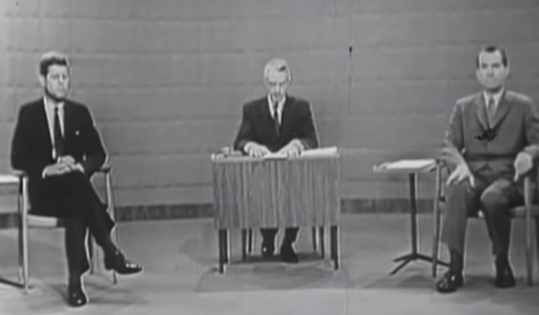 1960: Debati i parë televiziv vuri përballë njëri-tjetrit kandidatin demokrat, John F. Kennedy, dhe zv/ presidentin republikan, Richard Nixon, i cili sapo kishte dalë nga spitali dhe u shfaq i parruar, pasi kishte refuzuar makijazhin. Rreth 70 milionë shikuesit u përqendruan në atë që panë, dhe jo në atë që dëgjuan. Kennedy fitoi zgjedhjet.