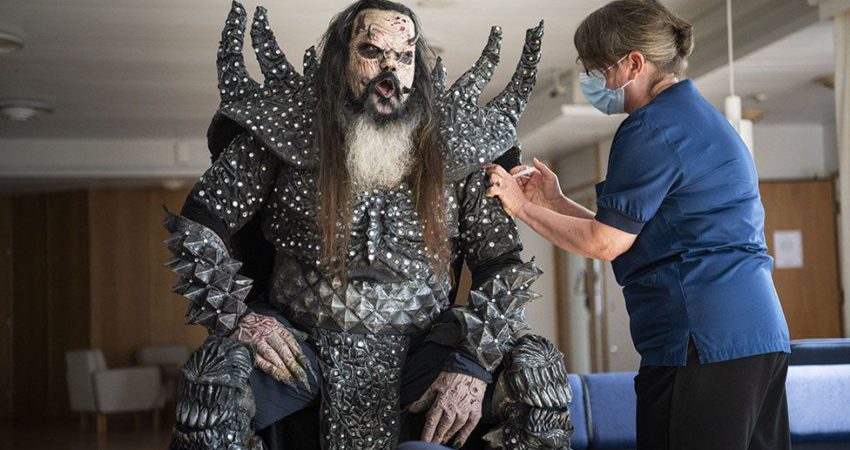 Mr. Lord, Tomi Petteri Putaansuu, i grupit finlandez hard rock, Lordi, ka vendosur të marrë dozen e dytë të vaksinës me ‘veshjen zyrtare’ të grupit.