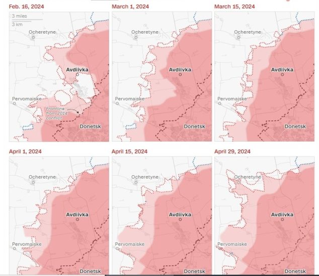 Vetëm të dielën, komandanti i lartë ushtarak ukrainas, Oleksandr Syrskyi, pranoi rënien e një sërë fshatrash që vartësit e tij kishin këmbëngulur për ditë të tëra se ishin ende të kontestuara. Sipas një analize të CNN, kthimi rezultues tregoi se forcat ruse, në pak më shumë se dy muaj, kishin bërë përparimin më thelbësor dhe të shpejtë që nga përparimet e korrikut 2022 pranë Severodonetsk.