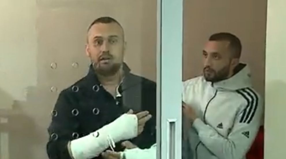 “Më kanë rrahur e më kanë masakruar policia, m’i ka thyer, është raporti i Spitalit Ushtarak, kam qenë i pavetëdijshëm”,- tha ai nga kafazi i mbyllur.