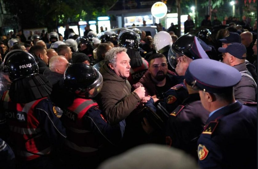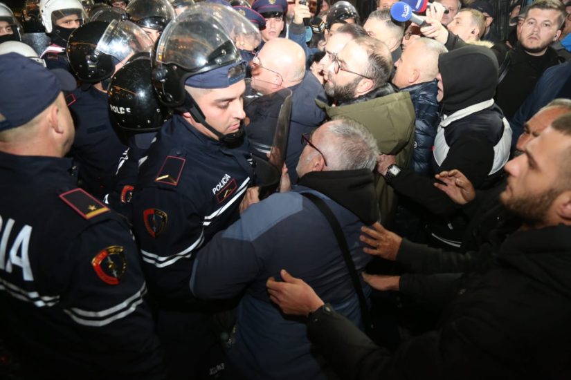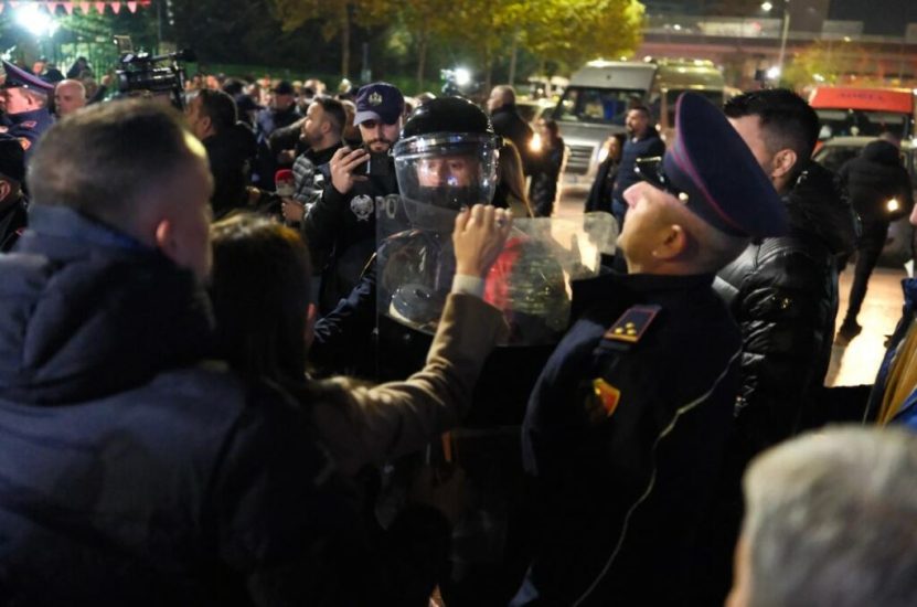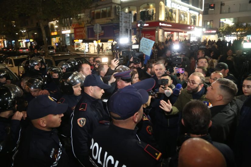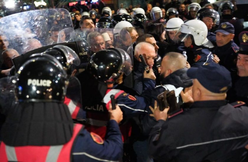 Përplasja më e fortë ndodhi përpara Bashkisë së Tiranës, ku policia përdori ujë për shpërndarjen e protestuesve.