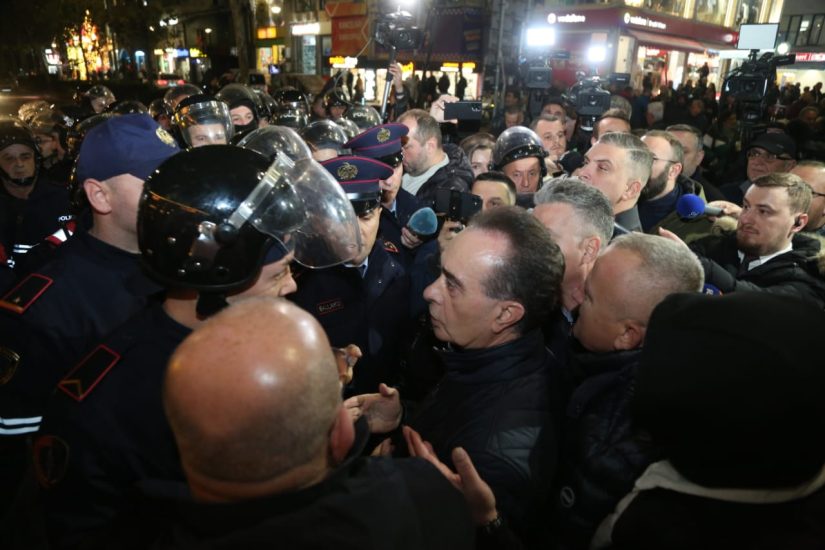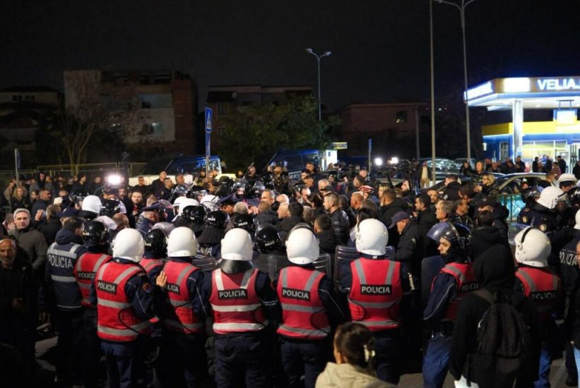 Tensionet nisën menjëherë në kryqëzimin e Rrugës së Elbasanit, ku pati përplasje mes deputetëve të opozitës dhe policisë. Një protestues i lënduar u ndihmua për t’u transportuar me ambulancë.