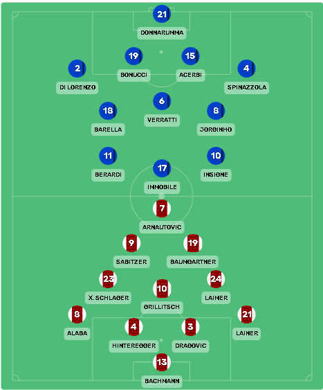 Është një stadium, që meriton një Itali të madhe dhe këtë ka kërkuar edhe trajneri Mançini. Skema e tij mbetet e njëjtë, ndërkohë që në formacion ka pak ndryshime në krahasim me ndeshjet e grupit. Açerbi do të laujë në mbrojtje përkrah Bonuçit, kurse Verrati do të jetë në mesfushë bashkë me Zhorzhinjon dhe Barelën, jashtë mbetet Lokateli. Në sulm treshja e zakonshme Insinje-Imobile-Berardi.