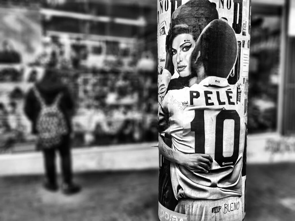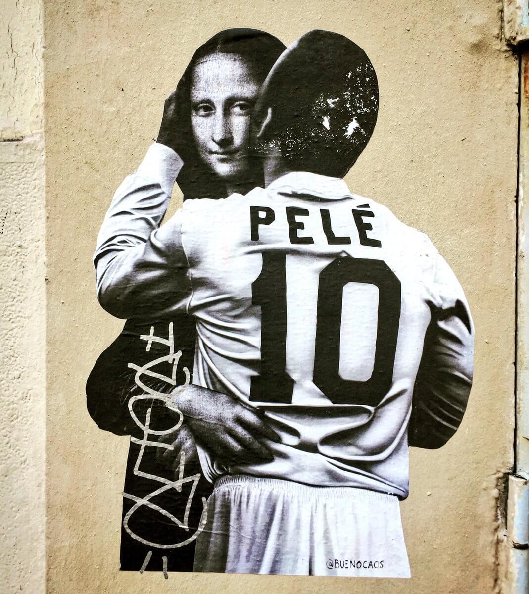 Luis Bueno është një artist rruge nga São Paulo, vepra e të cilit ‘’Pelé the Kisser’’ mund të gjendet nëpër vende të ndryshme në të gjithë botën. Kjo seri rrjedh nga një fotografi e famshme e Pelé duke përqafuar Muhamed Ali pas ndeshjes së tij të fundit për New York Cosmos në 1977. Ideja, është e thjeshtë. Bueno zëvendëson Muhamed Ali me një tjetër ikonë. Por rezultati i këtij zvetënimi të kohës dhe rrethanave është të merret një ide të shkurtër rreth mbretërisë së mitologjisë kulturore, ku figura të famshme shfaqen duke u përqafuar ose siç i sheh Bueno – duke u puthur.