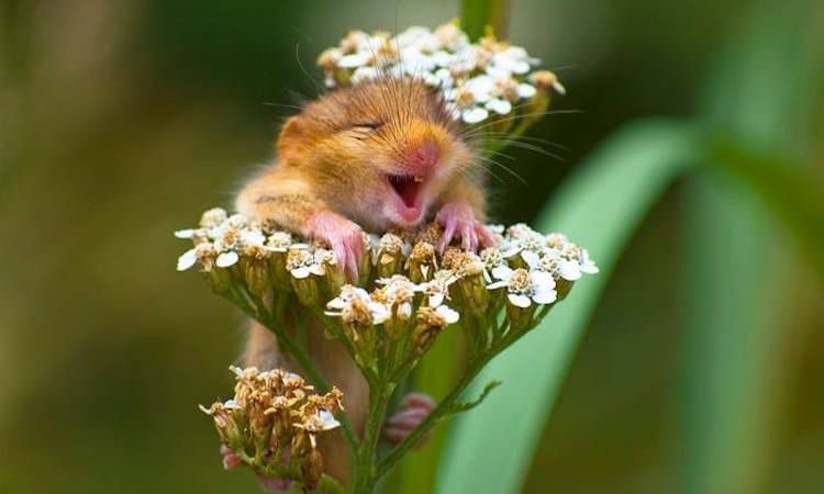 Nëse lumturia e ardhjes së pranverës do të kishte një fytyrë, do të ishte pikërisht fytyra e një brejtësi që qëndron i lumtur në një lule.