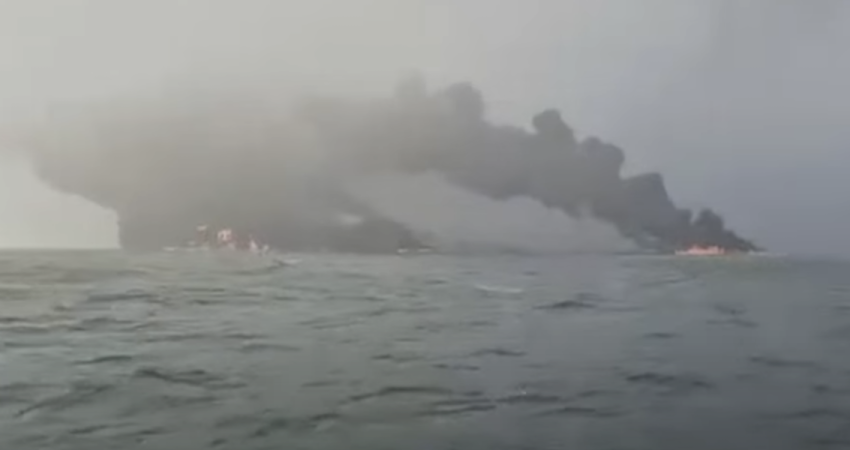 Pas përplasjes, cisterna ka marrë flakë dhe, siç raporton BBC Neës, një zjarr ka rënë edhe në anijen e mallrave.