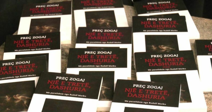 Kjo është një ndër poezitë që i ka dhënë dhe titullin librit më të ri të Preç Zogajt, “Një e tretë, dashuria”. Libri me poezi u promovua në ambientet e Arturbina nën moderimin e aktorit të Teatrit Kombëtar, Dritan Boriçi, me pjesëmarrjen e emrave të rëndësishëm në skenën letrare dhe interpretimin e aktorëve, Doriana Çaushi dhe Donald Shehu.