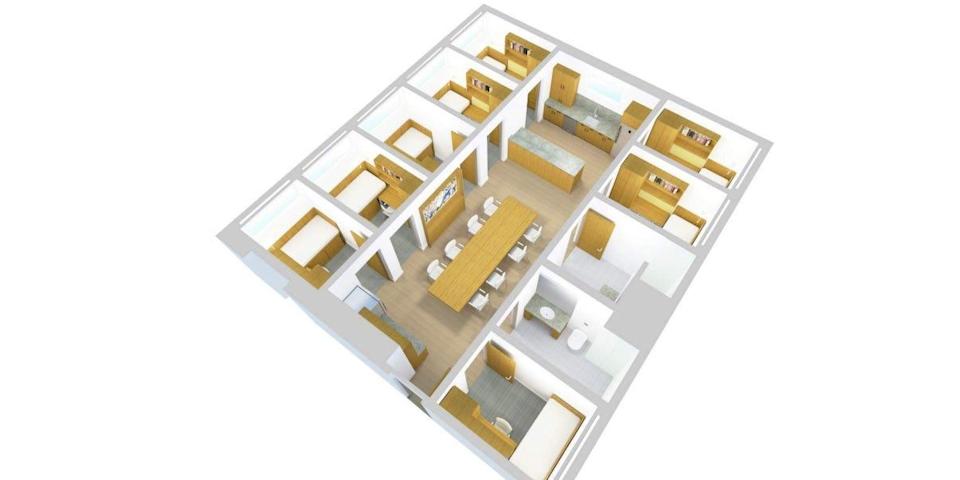 Në vend të dritareve, dhomat do të kenë llamba që imitojnë dritën e diellit, një ide e frymëzuar, thotë Munger, nga portat virtuale në anijet e lundrimit Disney. Ai gjithashtu argumenton se dhomat e vogla të gjumit do t’i inkurajojnë banorët të kalojnë kohë së bashku në zonat e përbashkëta.