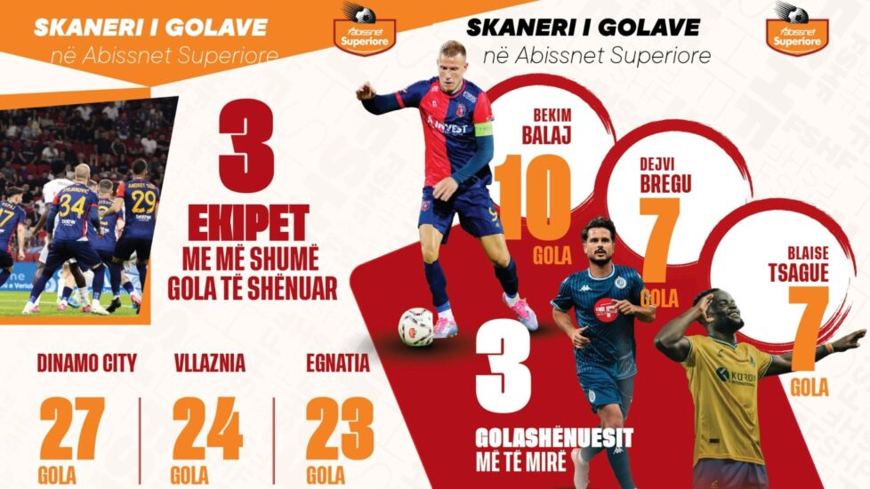 Me 10 gola, Bekim Balaj (Vllaznia) kryeson listën e shënuesve më të mirë, ndjekur nga Dejvi Bregu (Dinamo City, 7) dhe Blaise Tsague (AF Elbasani 7).