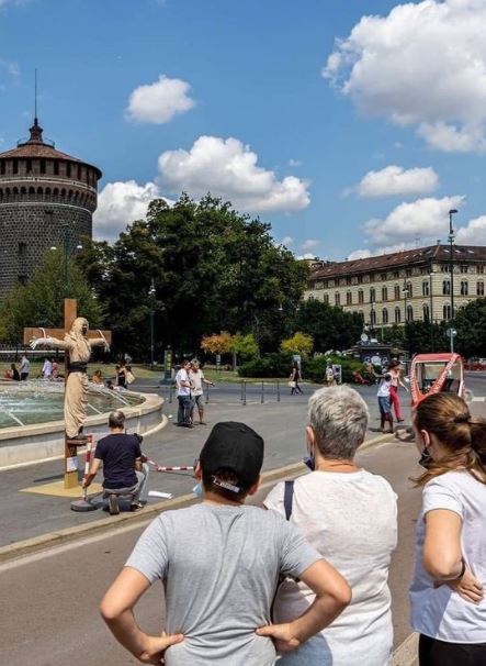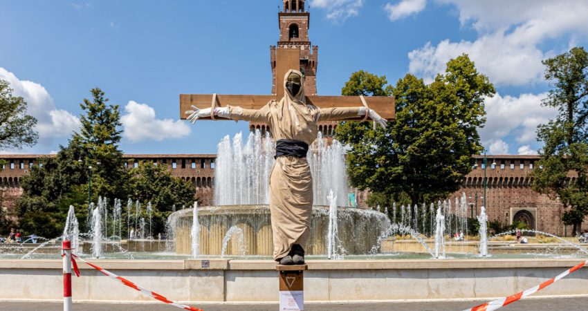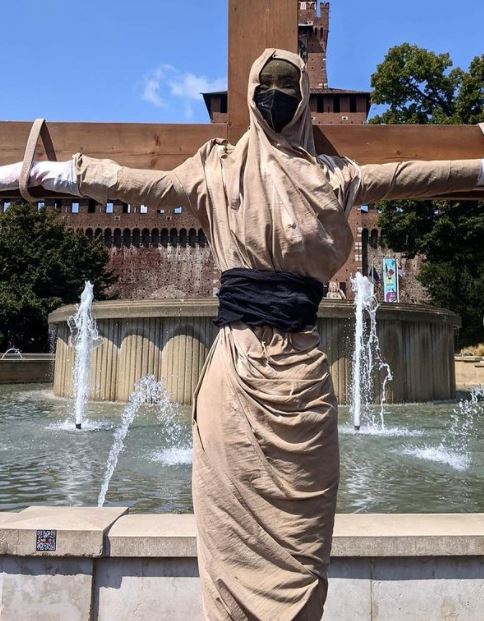 Cristina Donati Meyer ka realizuar një skulpturë ku duket një grua afgane e veshur me burka. Instilacioni i vendosur në sheshin Castello në Milano, mban nën shkrimin “Gratë̈ afgane falënderojnë̈”