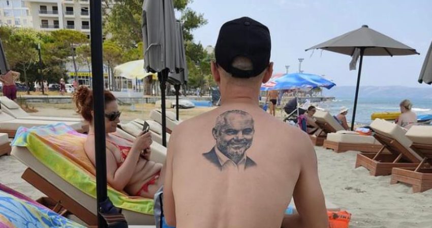 Deri tani kishim parë tatuazh vetëm portretin e ish-kryeministrit Sali Berisha në krahun e ndonjë mbështetësi të zjarrtë të tij. Kësaj here e ka radhën kryeministri Edi Rama që duket se do të jetë po aq jetëgjatë në politikë sa Berisha. Një i ri ka bërë tatuazh fytyrën e tij në kurriz duke e reklamuar me po aq bujë sa fansat e Berishës. Fotoja është shkëputur nga një qytetar në plazh dhe po bën xhiron në rrjetet sociale.