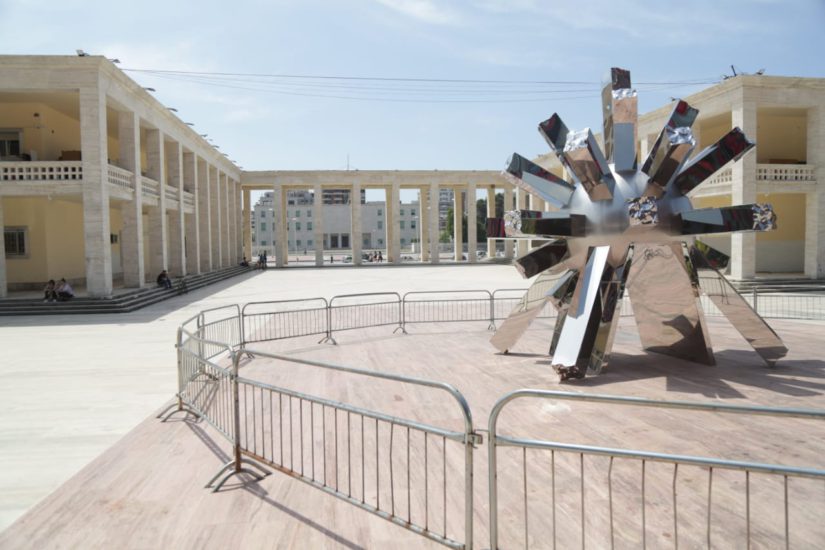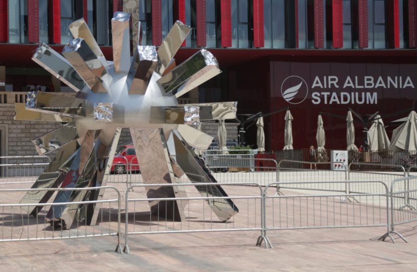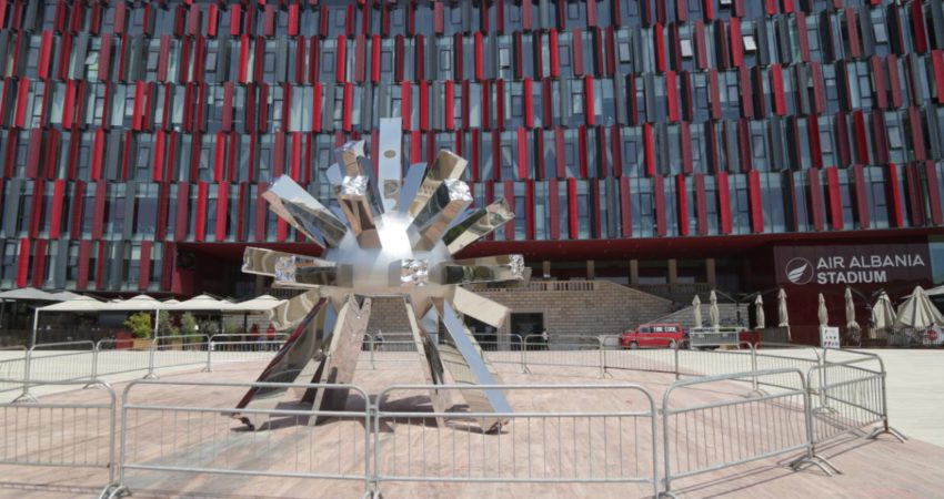 Në Arena Kombëtare është vendosur një instilacion në formën e virusit Covid-19, një instalacion që kujton një vit të vështirë për gjithë botën për shkak të luftës me pandeminë.