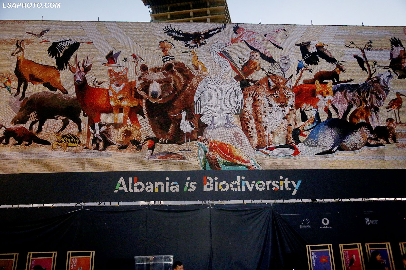 “Shqipëria është Biodiversitet” është një vepër arti e vendosur në sheshin Skënderbej, që ka për synim ndërgjegjësimin mbi ekosistemet dhe speciet që banojnë në vendin tonë.