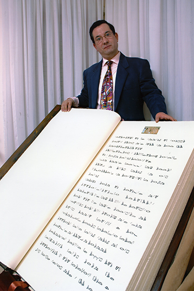 Dhe sikur kjo të mos duket mjaft e vështirë, ai shkruan çdo libër në gjuhën e tij origjinale, qofshin hieroglife, hebraishte të vjetra, kineze tradicionale, maja, etruske, kuneiforme ose glife vojnich.