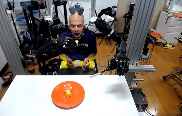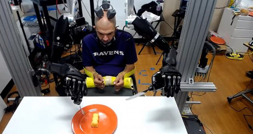 Robert ‘Buz’ Chmielewski ka lëvizje minimale në gjymtyrë për shkak të një aksidenti, por falë elektrodave në trurin e tij, Chimielewski mund të kontrollojë dy krahë robotikë për t’u ushqyer përsëri. Hulumtimi po kryhet me Universiteti i Mjekësisë “Johns Hopkins”, i cili ndau një video të Chimielewskit duke ngrënë një ëmbëlsirë Twinkie.