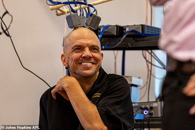 Tre elektroda lidhen me krahët e majtë dhe të djathtë të Chmielewskit dhe të tjerët janë të lidhur me zonat e trurit që sjellin reagimet shqisore nga gishtat protezë.