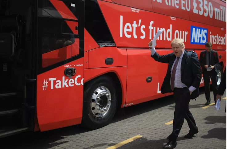 Gjatë fushatës, Xhonson nuk i kurseu deklaratat dhe kritikat e ashpra duke deklaruar se Mbretëria e Bashkuar po i dërgonte 350 milion paund cdo javë BE-së, të cilat sipas tij mund të investoheshin në shëndetësi. Ai gjithashtu argumentoi se liria e lëvizjes së BE-së e bëri Mbretërinë e Bashkuar më pak të sigurt dhe se dalja nga unioni do t’i lejonte Mbretërisë së Bashkuar të rimerrte kontrollin mbi kufijtë e saj.