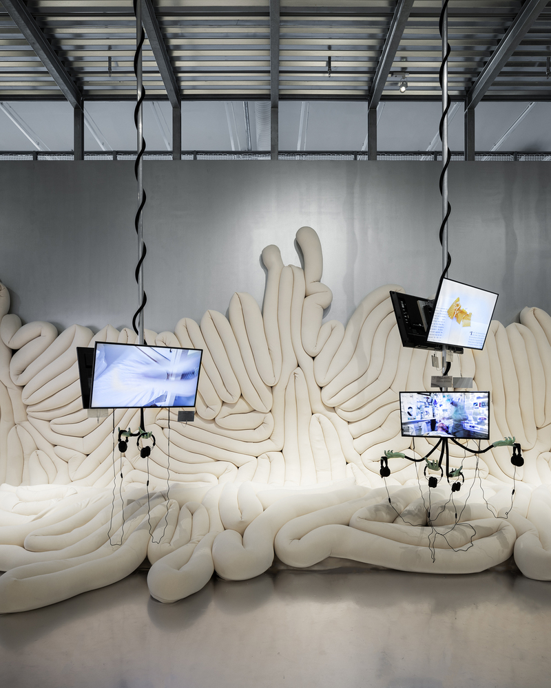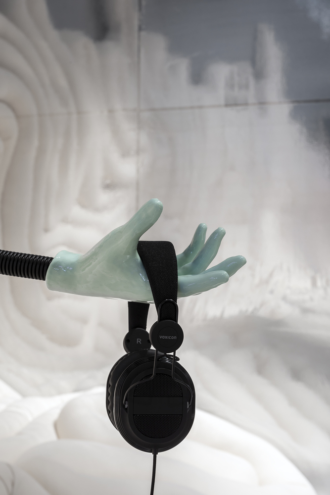 Arkitektura e ekspozitës është një përpjekje për të sintetizuar fushën krijuese të ASMR dhe botën e saj të pasur materiale në një gjuhë të lexueshme. Dizajni i ekspozitës ofron një mjedis me temperaturë normale, duke lejuar mysafirët të ndjehen të qetë, të kenë vëmendjen maksimale, të dëgjojnë cdo gjë dhe ndjejnë çdo gjë. Një ide e rëndësishme e eksploruar nga ekspozita është marrëdhënia midis teknologjisë dhe trupit të njeriut në formën materiale dhe prekëse “ndjeshmëria e dukshme e teknologjisë” e cila manifestohet në arkitekturën e ekspozitës. Muret bashkohen me dyshemenë përmes jastëkëve të butë të palosshëm biomorfik. Këta jastëkë ngjajnë me indin e brendshëm të trupit, palosjet e trurit, kabllot audio dhe format e valëve të çrregullt. Televizorët janë të varur në tavan si llampadarë dhe duar të buta të zhytura në silikon mbajnë kufjet.