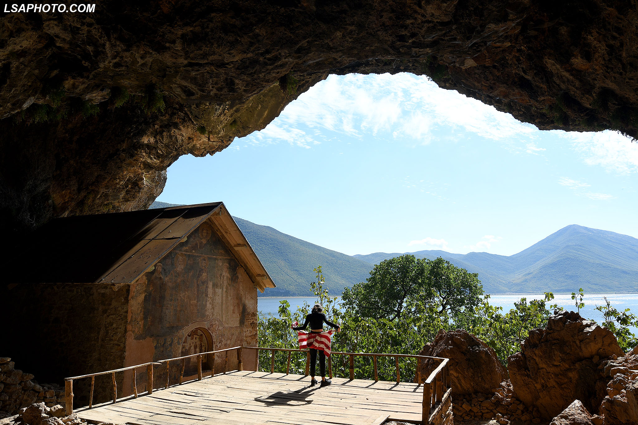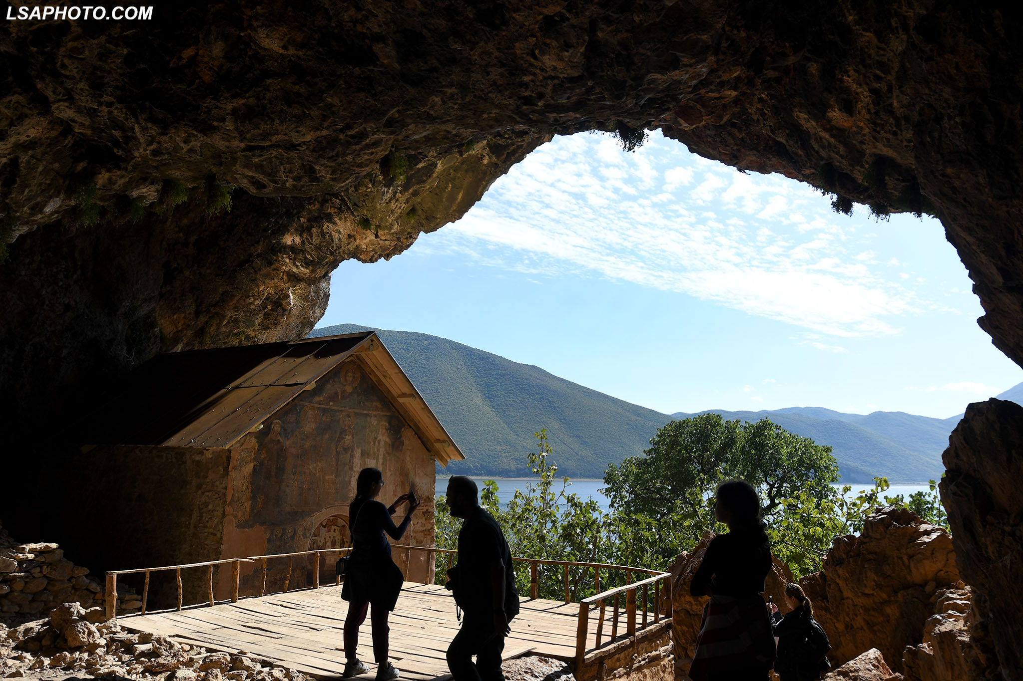 Shpella e Kishës së Shën Mërisë brenda Ishullit të Maligradit, në Liqenin e Prespës (foto poshtë). Kisha e Shën Mërisë është një themelim i shekullit XIV dhe ka shërbyer si qendër shpirtërore për prijësat shqiptarë. Mbishkrimet në këtë kishë u përkasin periudhave të ndryshme të lidhura me historinë e këtij monumenti.