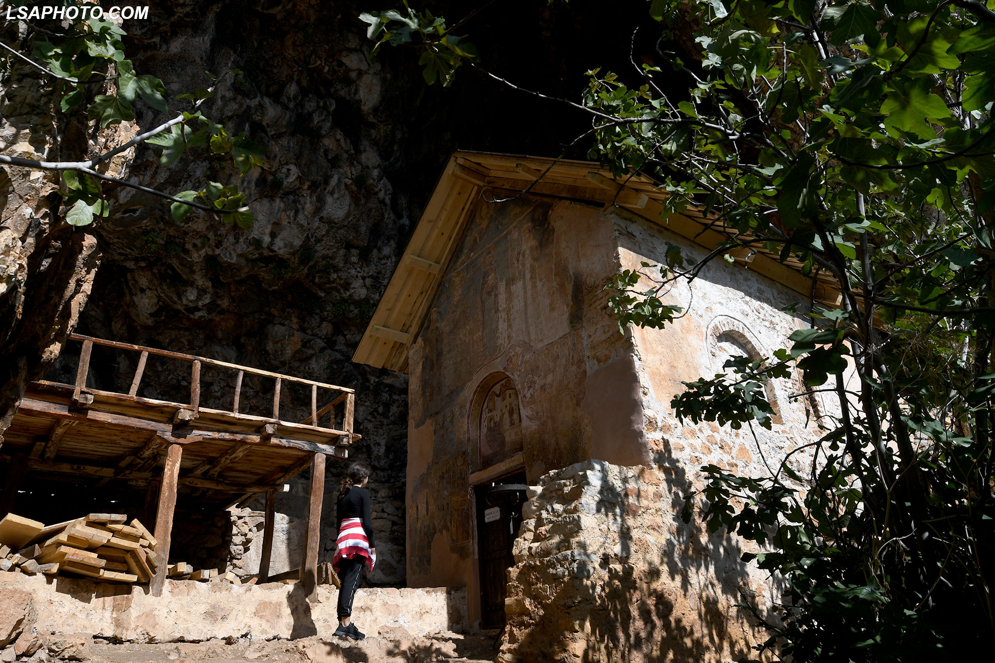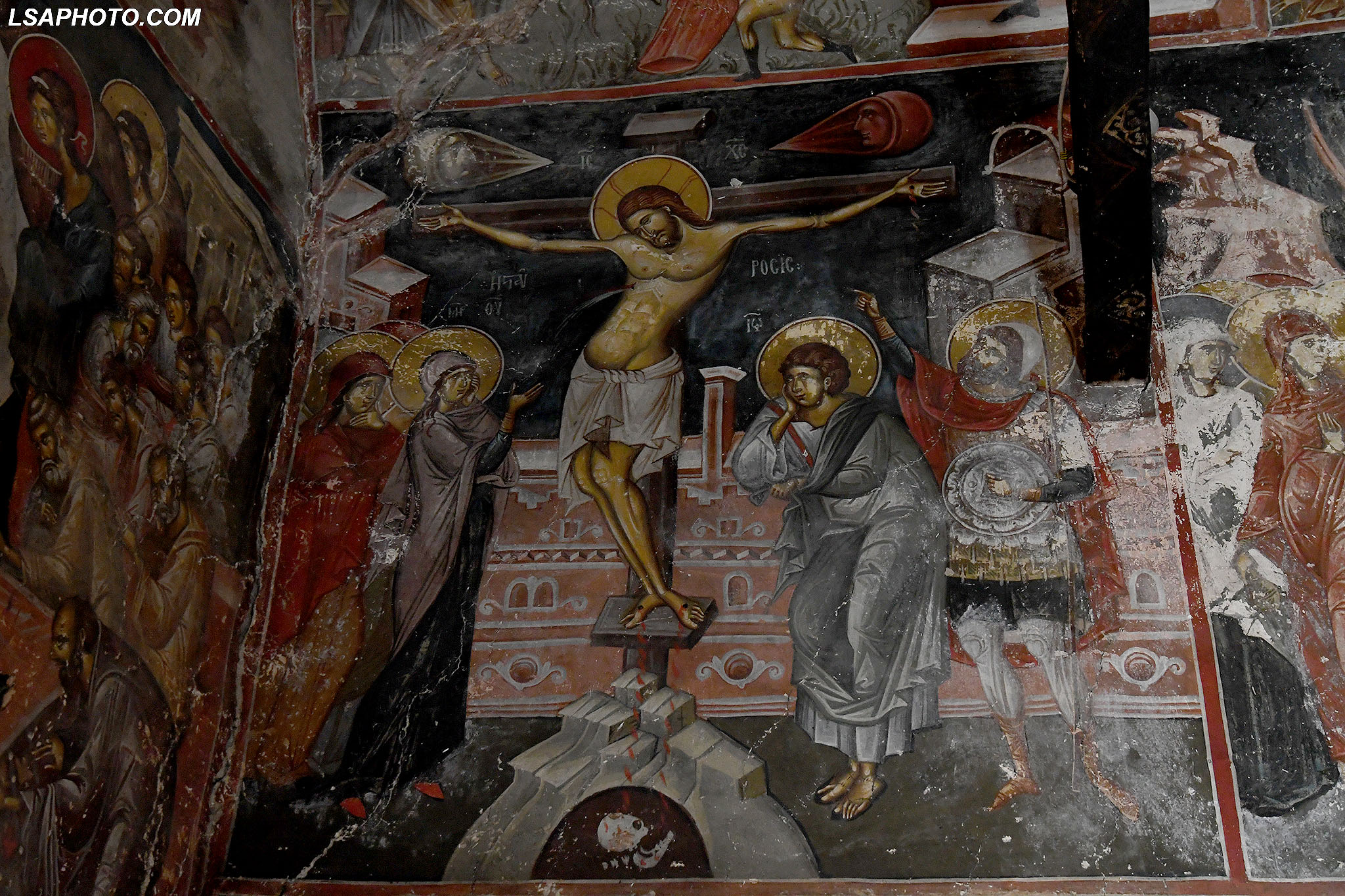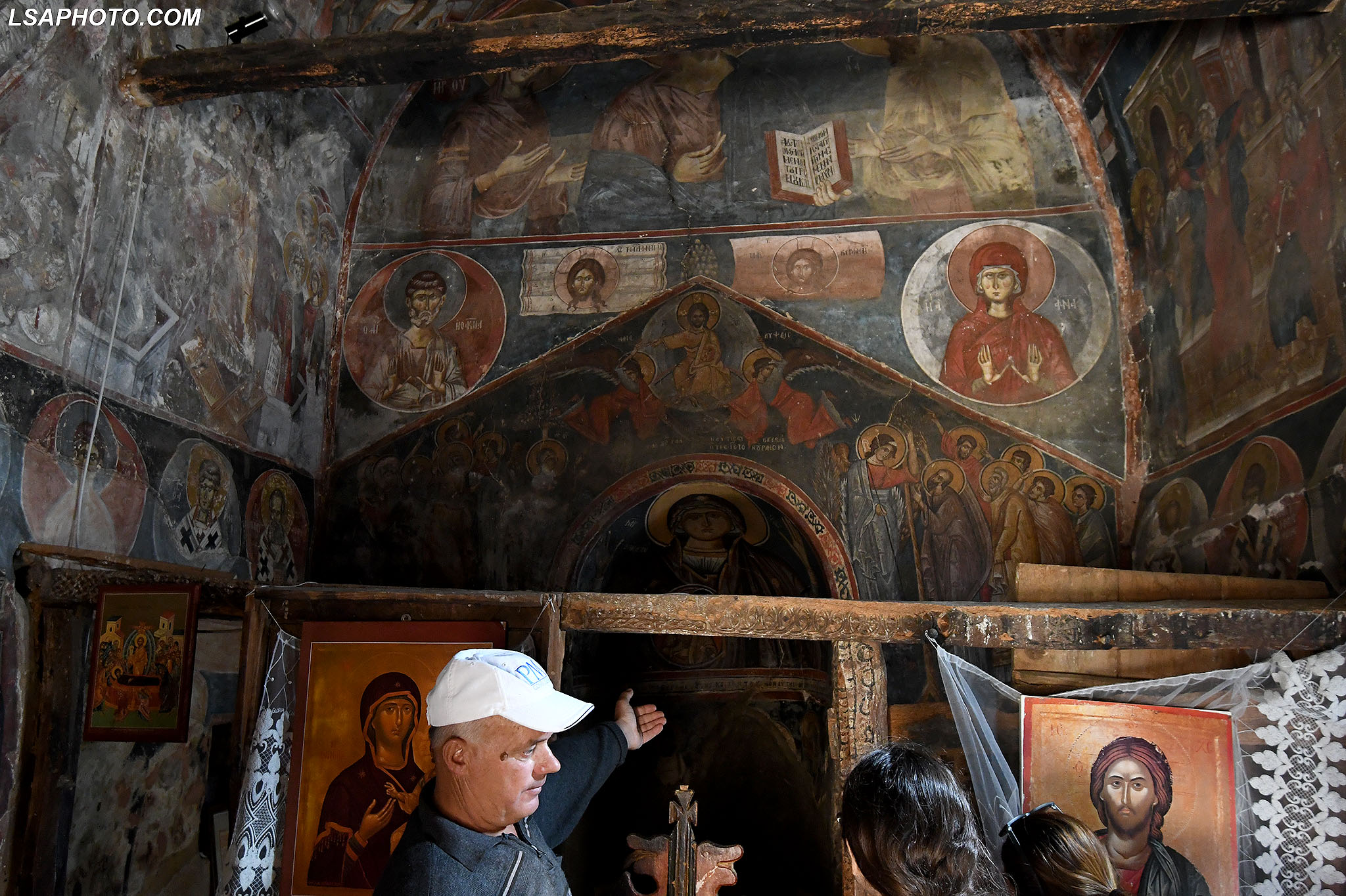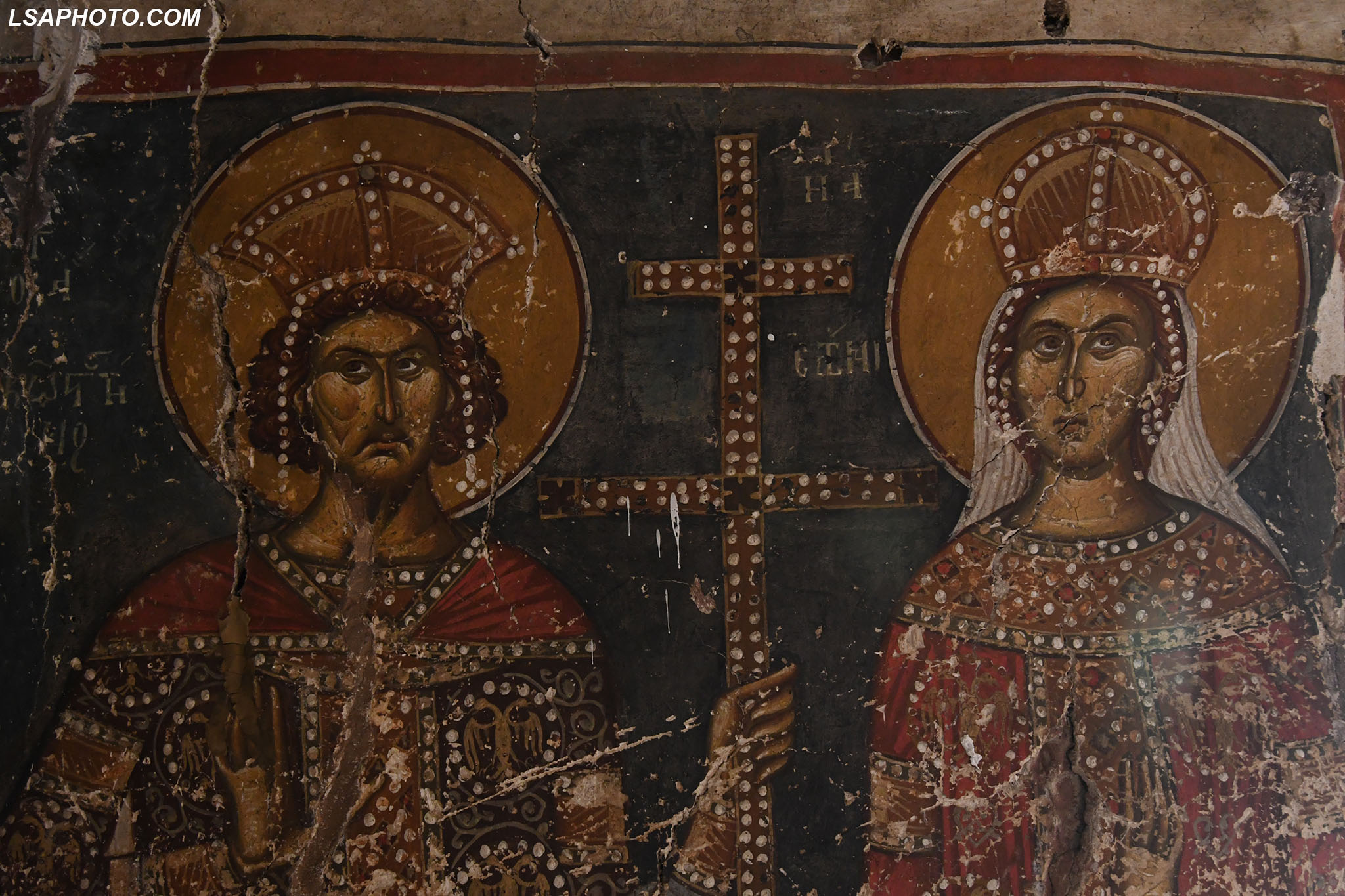 Për herë të parë në afresket e kësaj kishe (foto poshtë) vërehen tentativa në mënyrë arkaike dhe naive të disa përfytyrimeve të shenjta. Kemi figurën e Shën Mërisë të pikturuar në shkëmb që datojnë që nga shek V.