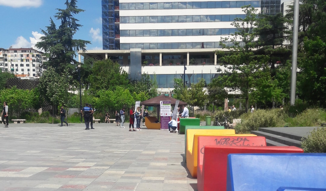 “Nuk e di, s’kam parë organizim tjetër”, i përgjigjet Besimi pyetjes nëse e di se në shesh, pak metra më larg, afër Operas, ndodhet dhe një tjetër organizim po aq i rëndësishëm edhe pse shumë i ndryshëm.