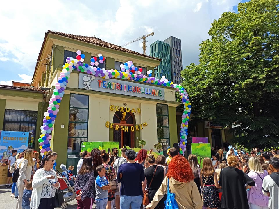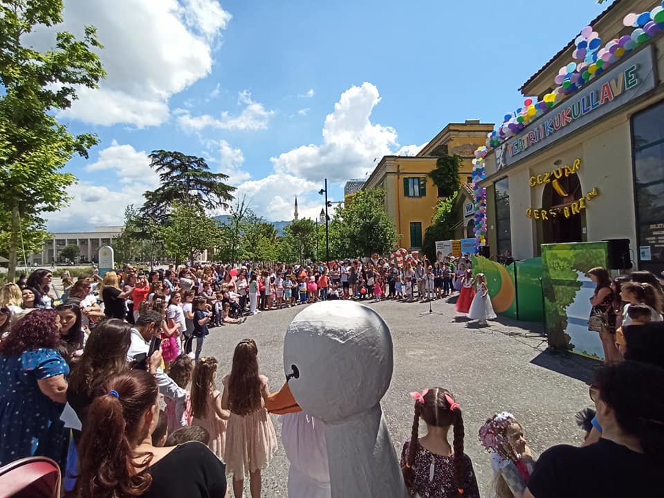 Sheshi “Skënderbej” ishte mbushur me fëmijë, prindër, familjarë dhe qytetarë të shumtë ndalonin te Teatri i Kukullave, për të dëgjuar të vegjlit që këndonin apo recitonin.