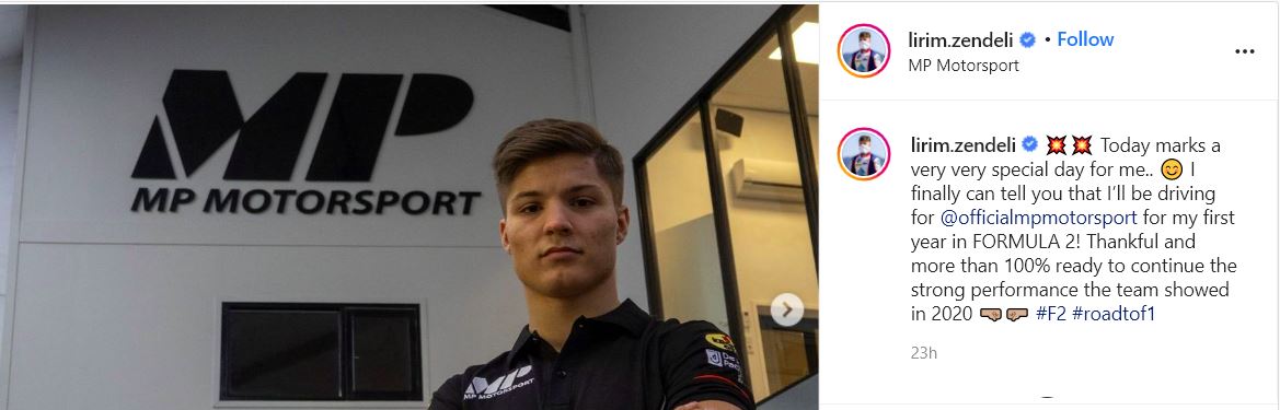 Në një video të publikuara nga skuderia e Formula 2, Zendeli tregon emocionet e kësaj eksperience: “Sot shënon një ditë shumë e veçantë për mua. Jam shumë i lumtur që do drejtoj makinën e MP Motorsport në vitin e parë të saj në Formula 2. Me katër fitore ata treguar formën e vërtetë fituese dhe unë jam i etur për t’i shtuar suksesin në vitin 2021. Ekipi ishte jashtëzakonisht produktiv në testet e zhvilluar në Bahrein, kështu që unë kam besim se do të jemi në gjendje të bëjmë mirë.”