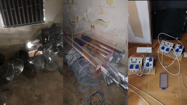 Gjatë zhvillimit të operacionit, janë gjetur dhe sekuestruar ventilatorë, platforma për shpërndarjen e rrymës elektrike, vazo të ndryshme, peshore elektronike dhe pajisje të tjera që shërbejnë për kultivimin e bimëve narkotike, një sasi lënde e dyshuar narkotike e llojit kanabis dhe dy aparate celulare.