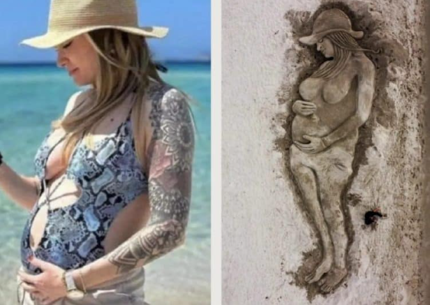 Në veprën e bërë me dorë, vajza portretizohet teksa shikon barkun e saj, njësoj si në një fotografi e saj që ka qarkulluar në internet pas vdekjes.