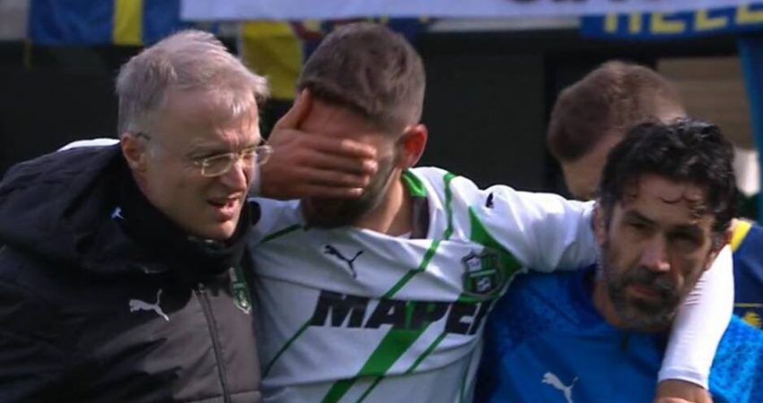Domeniko Berardi u dëmtua në ndeshjen me Veronën, ku kthehej titullar pas një mungesë të gjatë po për shkak dëmtimi. Sulmuesi po shkonte drejt portës, ku ndjeu dhimbje dhe kërkoi ndihmën e stafit mjekësor.