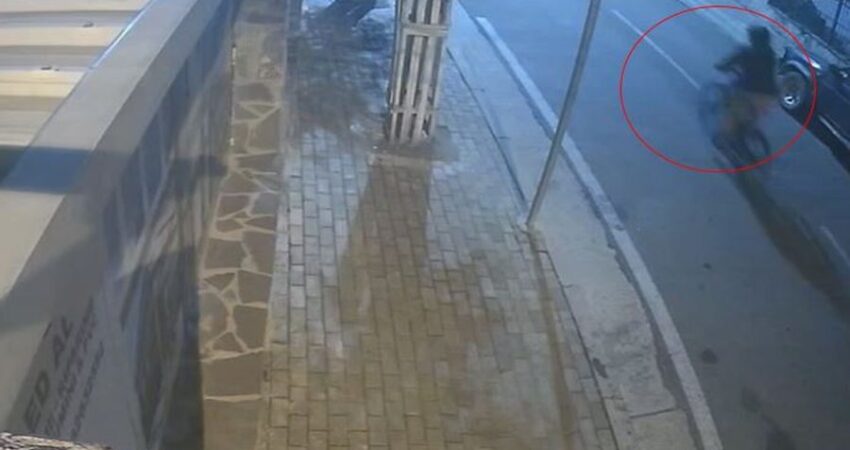 Në rastin e parë, kamerat kanë fiksuar një person që largohet me biçikletë, ndërsa në kokë mban një kapuç (siç shihet në foto).