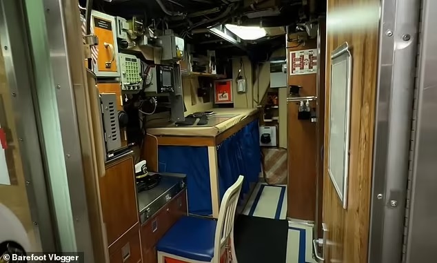 Cilat aspekte të nëndetëses i bënë më shumë përshtypje atij? “Sigurisht, dhoma e kontrollit,” thotë Fields. Atje, ai mëson nga udhërrëfyesi i tij turistik – komandanti i nëndetëses, Scott Bresnahan – se marinarët përdorin një levë nga ato të aparateve të videolojërave Xbox për të kontrolluar periskopin.
