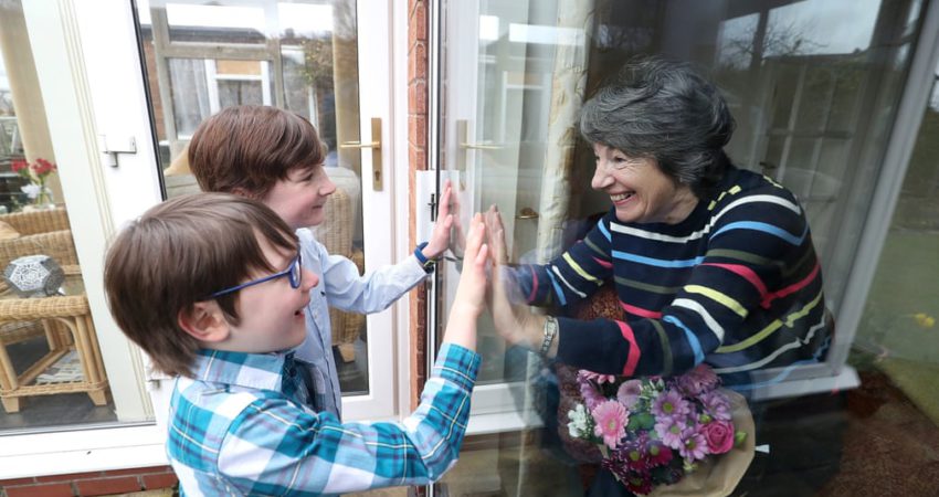 Ben dhe Isaac flasin me gjyshen e tyre Sue përmes një dritareje në shtëpinë e saj në Cheshire, Mbretërinë e Bashkuar ndërsa ajo vazhdon të qëndrojë e izoluar për shkak të covid-19. Tashmë është bërë një vit që ajo nuk ka asnjë kontakt fizik me nipërit dhe mbeat e saj.\The Guardian\
